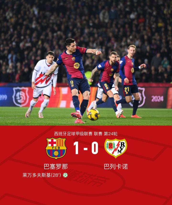 莱万点球绝杀,巴塞罗那1-0战胜巴列卡诺